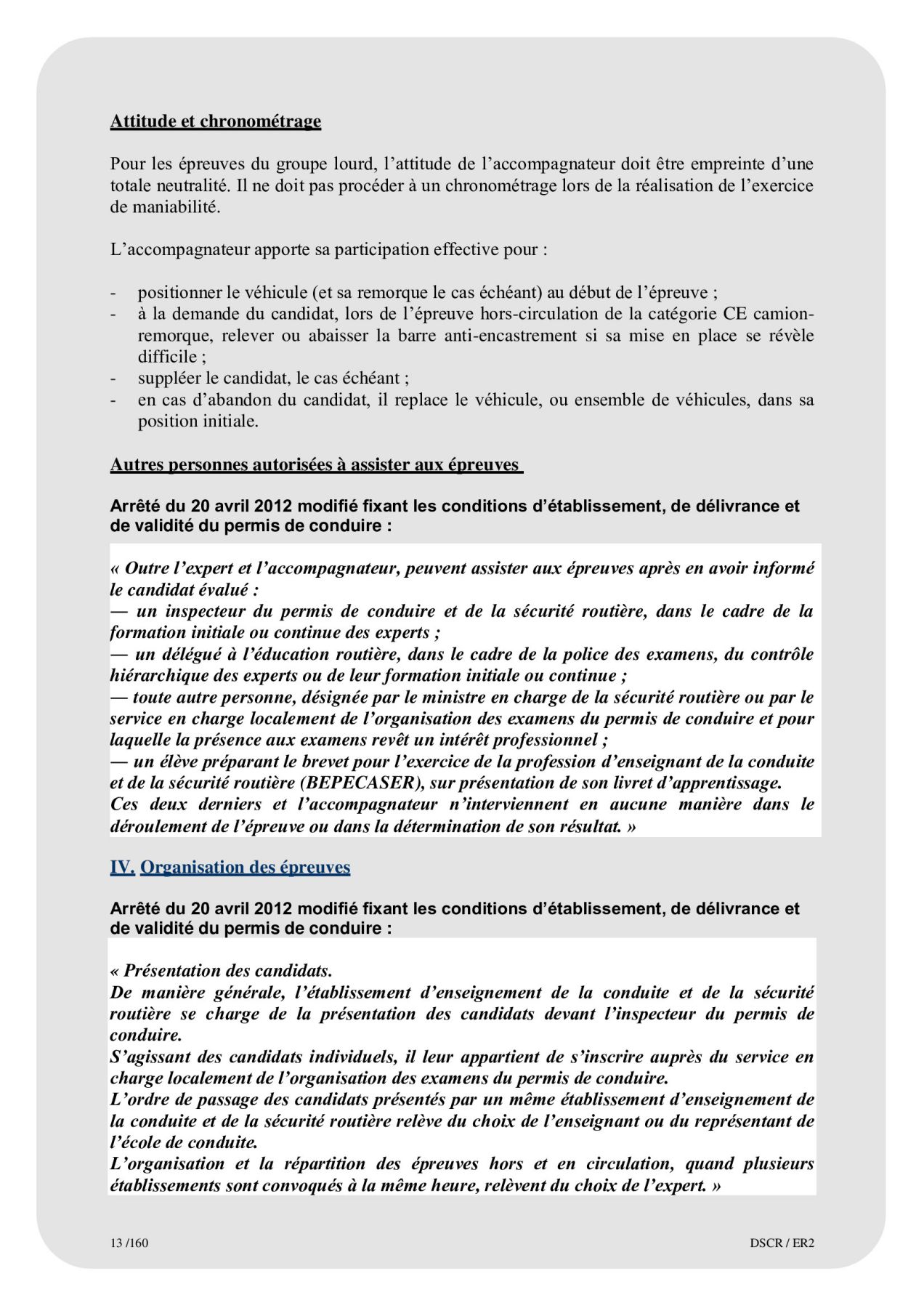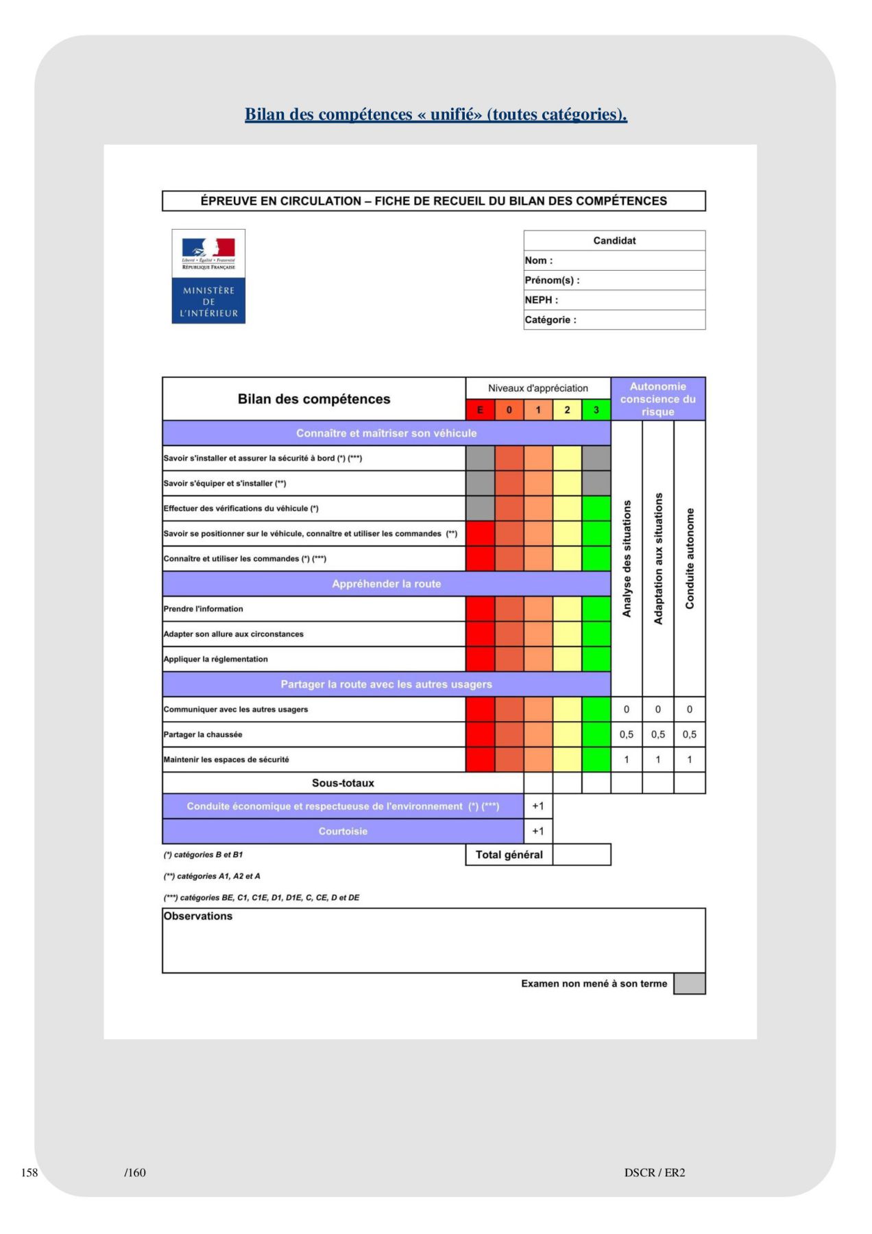 instructions fixant les modalités d'évaluation de l'épreuve pratique de l'examen du permis de conduire des catégories
